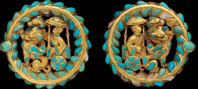 | Soon after the discovery, a guerrilla war against the Soviet occupation began, followed by civil war. During those years the treasure was kept in the Kabul Museum, which has since been looted. The day before the Russians fled Kabul in February 1989, the treasure was moved to the presidential compound, the safest place in the capital. |  |