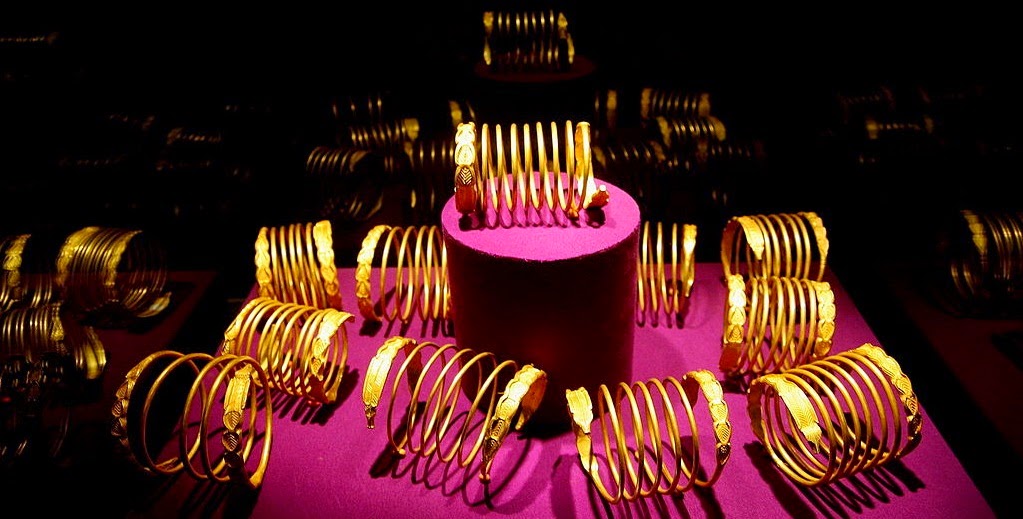![]() The recovered bracelets are now on display in Bucharest are the only ones of their kind found in Romania. At least another dozen, including the one still known as Lot 26, remain missing. | Sarmizegetusa's stolen gold was nearly lost. Recovering it involved authorities in Europe and the US and a decade of dogged sleuthing. Romanian authorities recovered 13 hammered gold bracelets and more than 27.5 pounds (12.5kg) of gold. | ![]() |