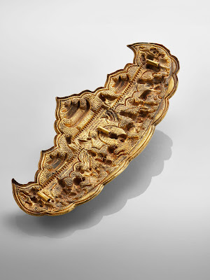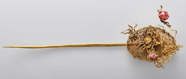 Headdress with dragons chasing a pearl. Ming dynasty (1368-1644) Gold with ruby inlay.
