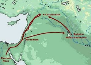 | Babylonian King Nebuchadnezzar II was the longest-reigning and most powerful monarch of the Neo-Babylonian Empire. Between 589-586 BCE, he laid siege to Jerusalem, eventually entering the city and razing it and its Holy Temple complex to the ground. The Babylonian king's two sieges of Jerusalem (in 597 and 587 BC) are depicted in 2 Kings 24–25. The Book of Jeremiah calls Nebuchadnezzar the "destroyer of nations". In 605 BCE, after the battle of Carchemish, Judah became a vassal state under Nebuchadnezzar. |  Egyptian military success against Babylon in 601 prompted vassal states, including Judah, to rebel. |