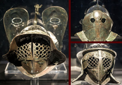 | Gladiators from the Zilten Mosaic. There were different types of gladiators: the Thraex, the Provocutor, the Hoplomachus, the Murmillo, the Secutor, the Retiarious, and many others depending on the time period and location. Each type had a specific style of armor and specific weapon or set of weapons. |