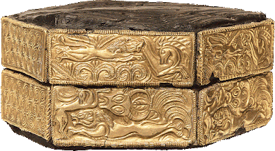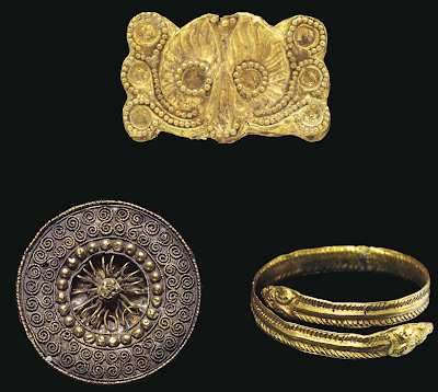 Button from the 16th century BC | Gold cup was found by Heinrich Schliemann in one of the shaft graves of Mycenae. | “Eyes of Agamemnon” mask. |
