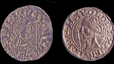 ![]() | On the reverse is a rare portrayal of Constantine riding his horse in battle holding a spear and shield with two fallen enemy soldiers. It commemorates a victory over Maxentius at Milvian bridge outside Rome on October 28, 312. Constantine the Great ruled between 306 and 337 AD. |